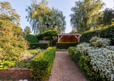 • Vrijstaande stenen berging met overkapping in de achtertuin