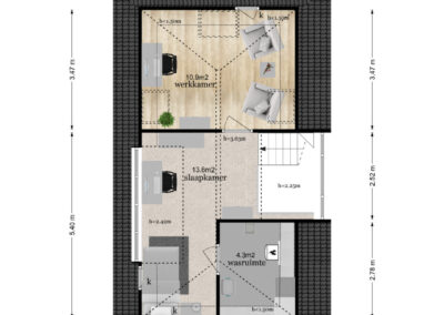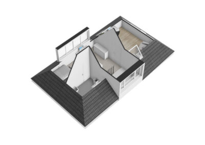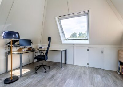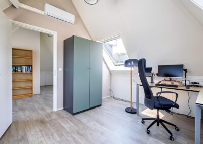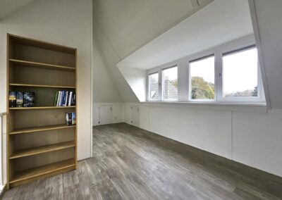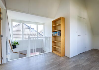 Vaste trap naar de ruime zolderverdieping met een twee brede dakkapellen (dakkapellen zijn voorzien van elektrische rolluiken en 1 nieuw dakkapel eind 2023 is zelfs voorzien van plissé gordijnen) en meerdere dakramen, op deze verdieping vind je hier de overloop en toegang tot de slaapkamer met airconditioning (mogelijkheid tot 5e slaapkamer, nieuw dakkapel is reeds geplaatst). Verder is er een ruimte voor cv-installatie en witgoedaansluitingen.