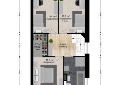 Met maar liefst 4 ruime slaapkamers (eenvoudig uit te breiden naar 5 slaapkamers), biedt deze woning voldoende plek voor elk gezinslid. De extra kamers kunnen ook dienen als thuiskantoor, hobbyruimte of logeerkamer. Door de aangebouwde garage kan de woning tevens levensloopbestendig worden gemaakt!