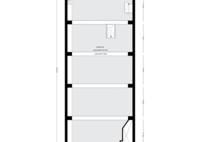 Wordt gebruikt als opslagruimte. De hoogte is circa 173 cm tussen de draagbalken.