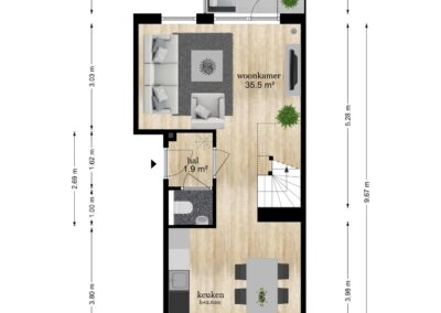 De maisonnette biedt u een ruime woonkamer met een open keuken, 3 slaapkamers en comfortabele badkamer. Met energielabel A is dit een duurzaam appartement. Het gebouw is gebouwd in 2016 en gelegen tegenover de winkels en parkeerplaats van het centrum Leersum. De centrale berging biedt ruimte om fietsen te plaatsen.