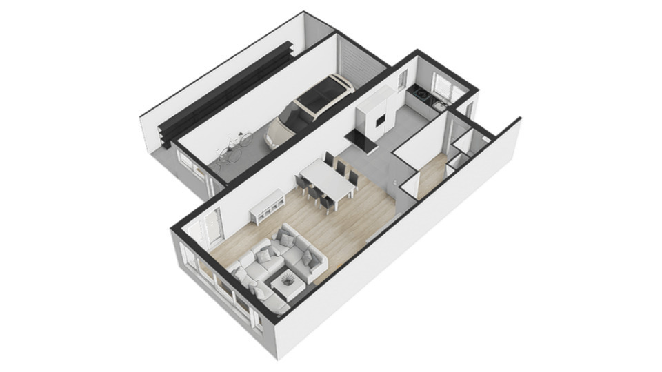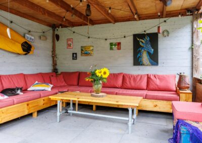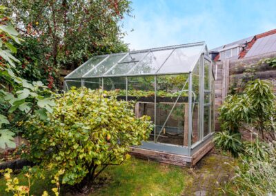 De verlengde garage is 26 m² groot met aan de voorzijde voorzien van een sectional garagedeur met afstandsbediening. Een ideale ruimte voor auto, motoren en/of andere hobby’s. Ook een praktijk of werken aan huis biedt tot de mogelijkheden! Praktisch is ook de grote aangebouwde schuur naast de garage van 17 m² voor extra opslag/bergruimte, alsmede een achterom.