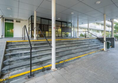 – In 2022 is de gevel achterzijde van het gebouw vernieuwd met fraaie kunststof kozijnen en HR+++ beglazing.