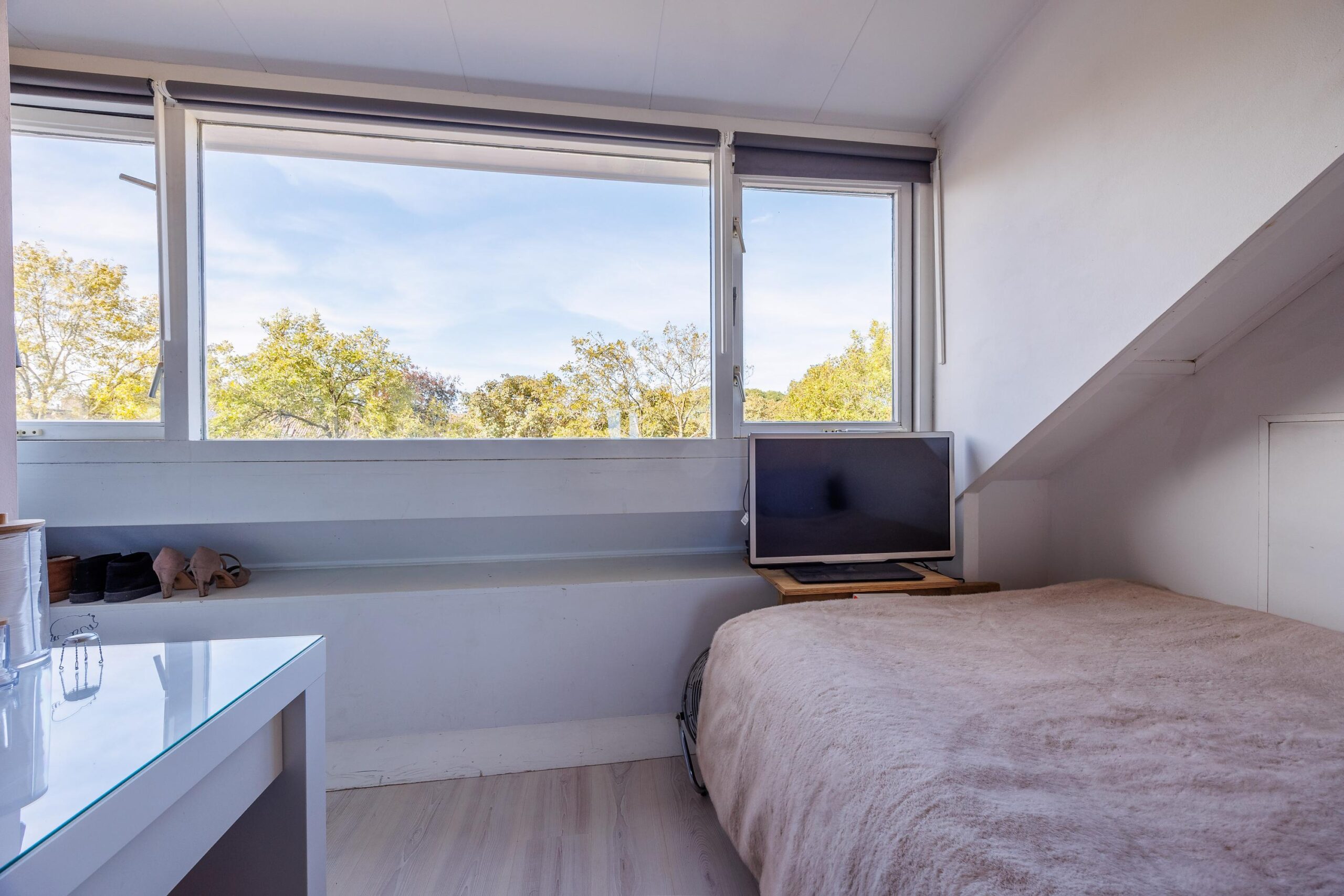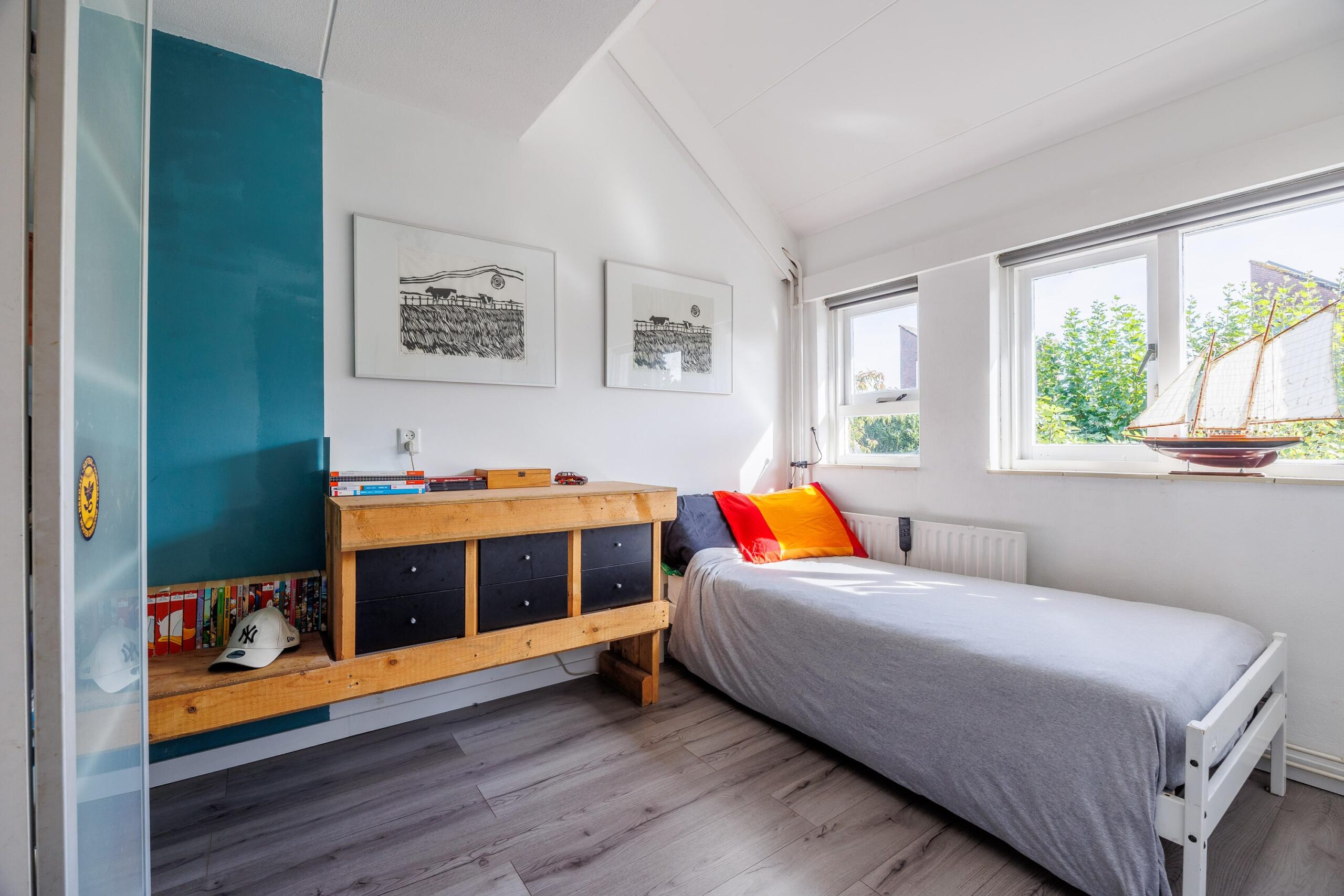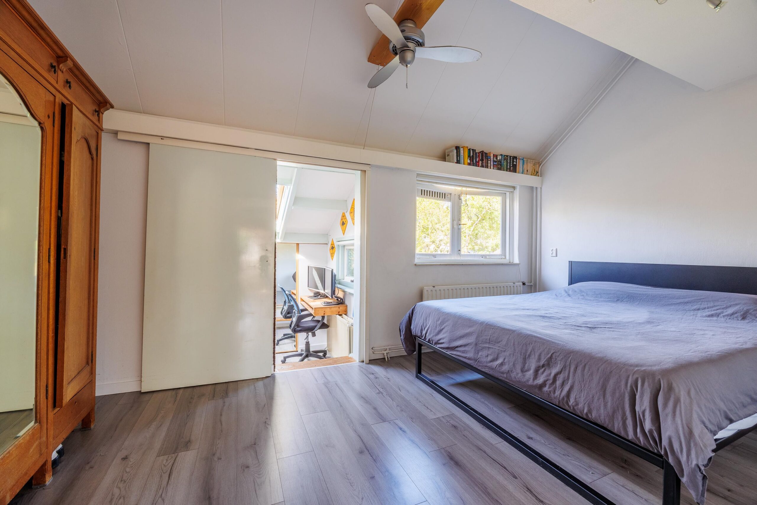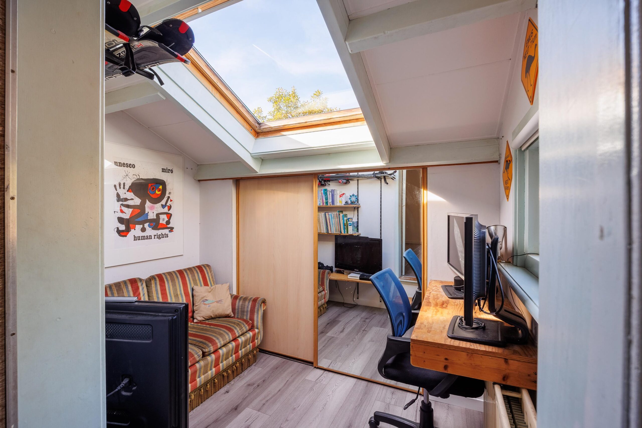 Eerste verdieping: Overloop, toegang tot 3 ruime slaapkamers van circa 14 m², 9 m² en 6 m². De grootste slaapkamer heeft nog een extra chill-/werkruimte van circa 5 m² aan de voorzijde boven de hal. De moderne badkamer is voorzien van een ruime inloopdouche, tweede toilet en wastafel.