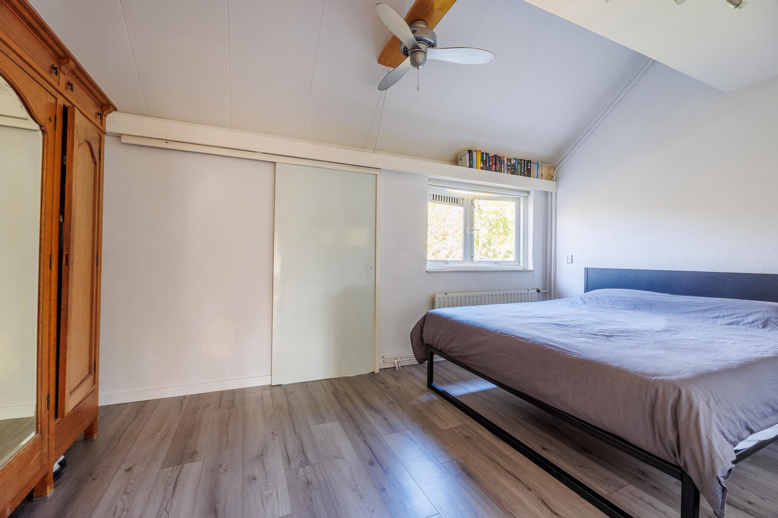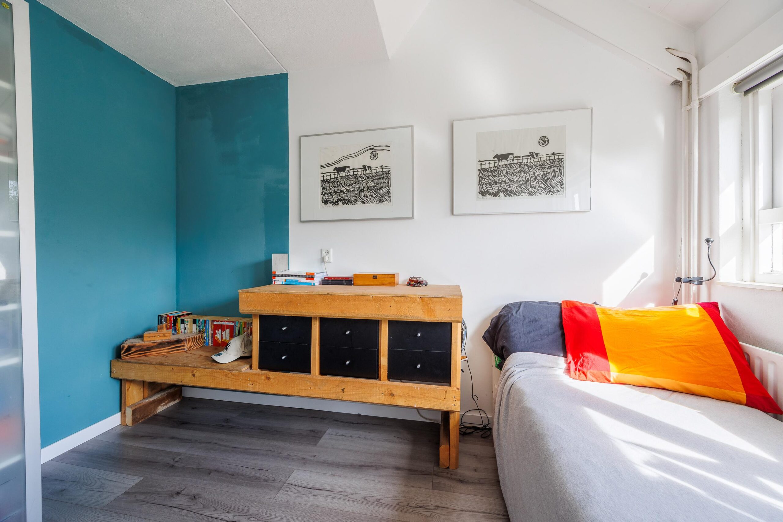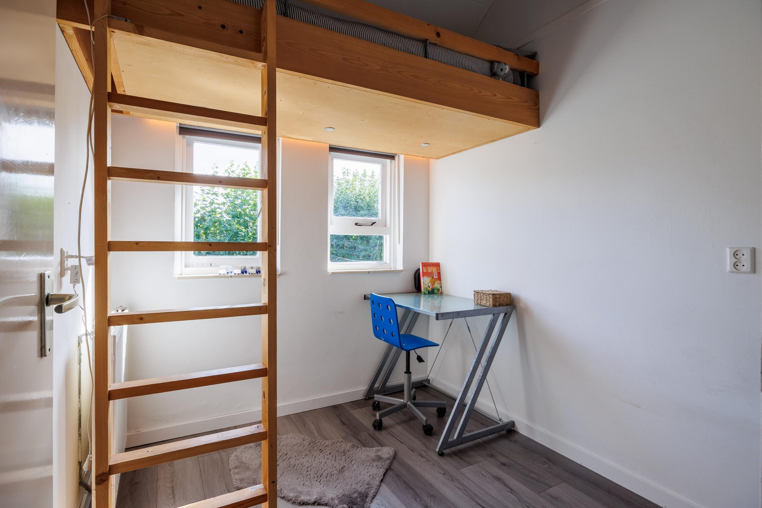 Eerste verdieping: Overloop, toegang tot 3 ruime slaapkamers van circa 14 m², 9 m² en 6 m². De grootste slaapkamer heeft nog een extra chill-/werkruimte van circa 5 m² aan de voorzijde boven de hal. De moderne badkamer is voorzien van een ruime inloopdouche, tweede toilet en wastafel.