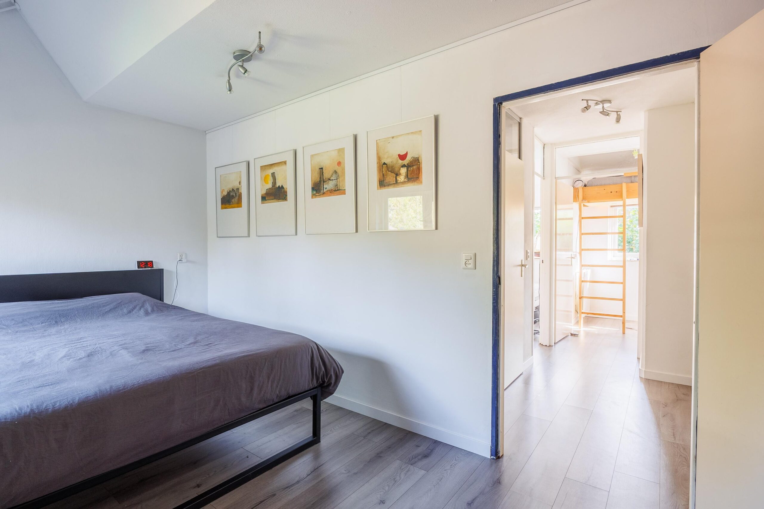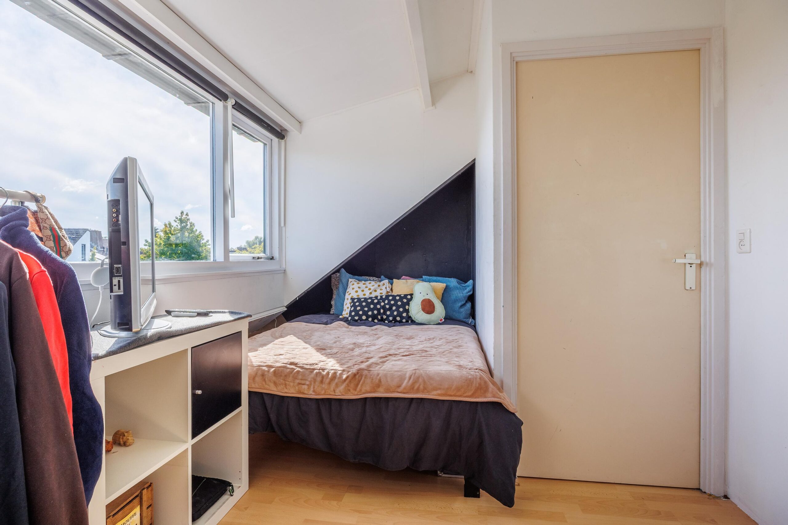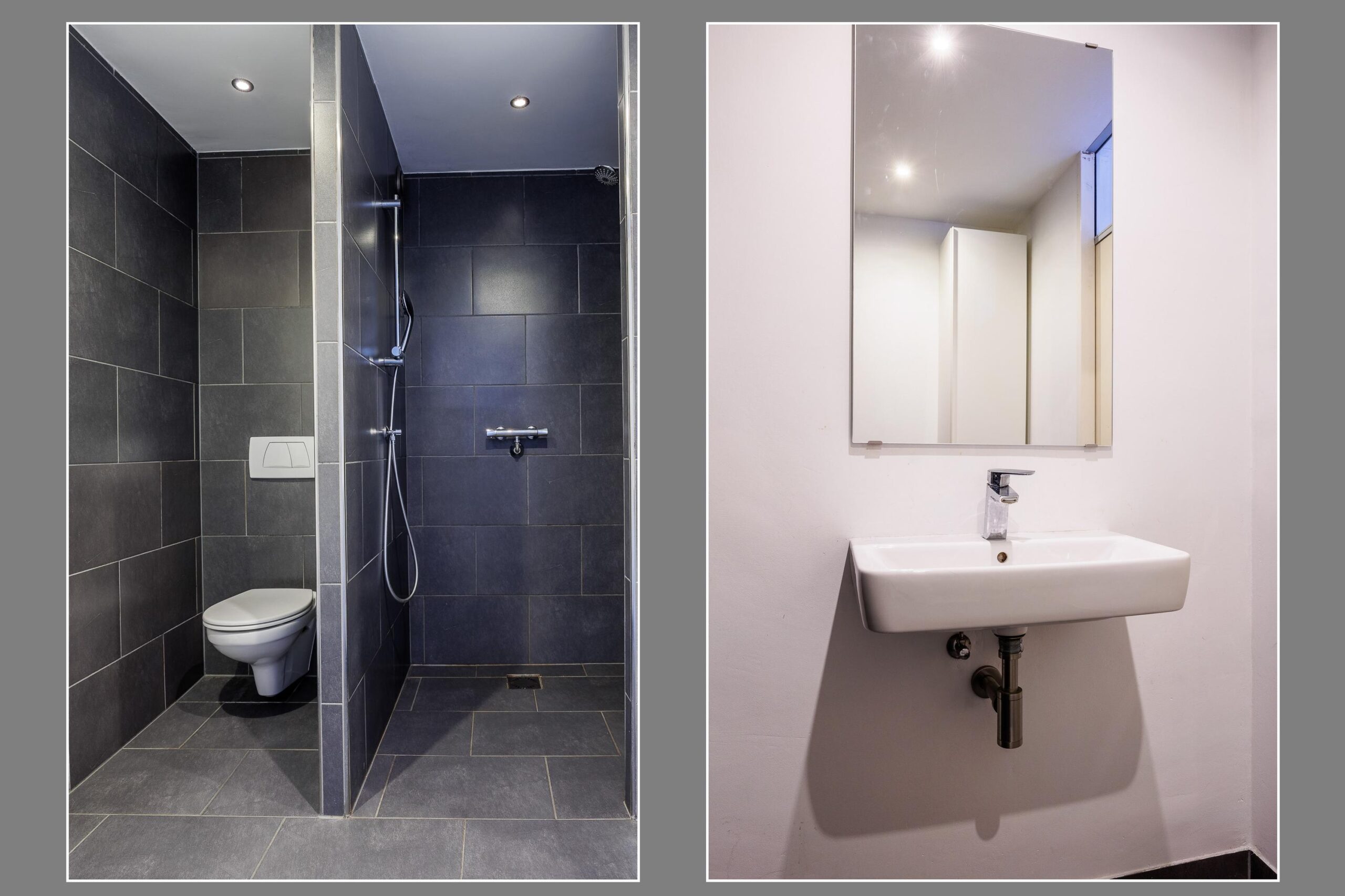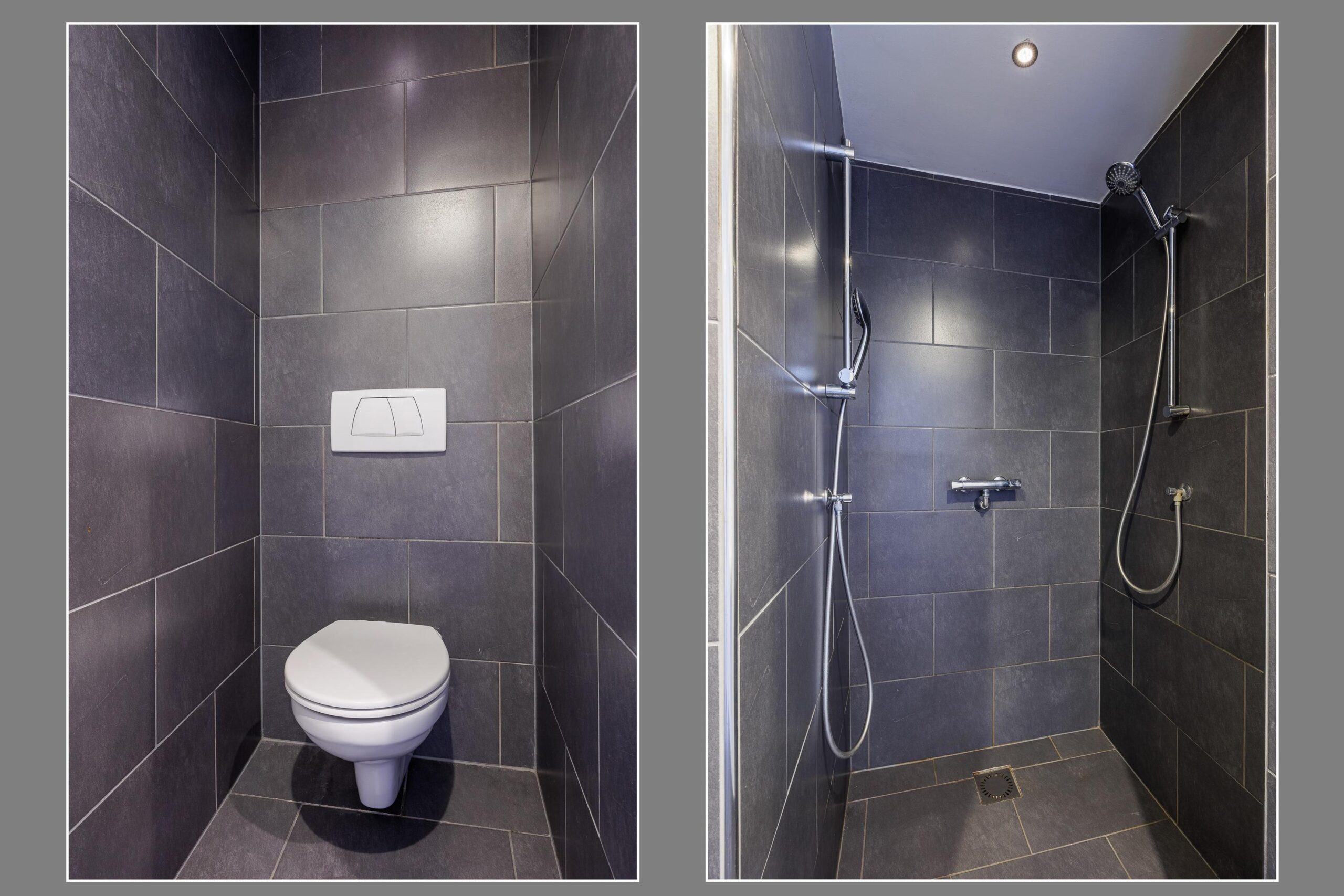Eerste verdieping: Overloop, toegang tot 3 ruime slaapkamers van circa 14 m², 9 m² en 6 m². De grootste slaapkamer heeft nog een extra chill-/werkruimte van circa 5 m² aan de voorzijde boven de hal. De moderne badkamer is voorzien van een ruime inloopdouche, tweede toilet en wastafel.