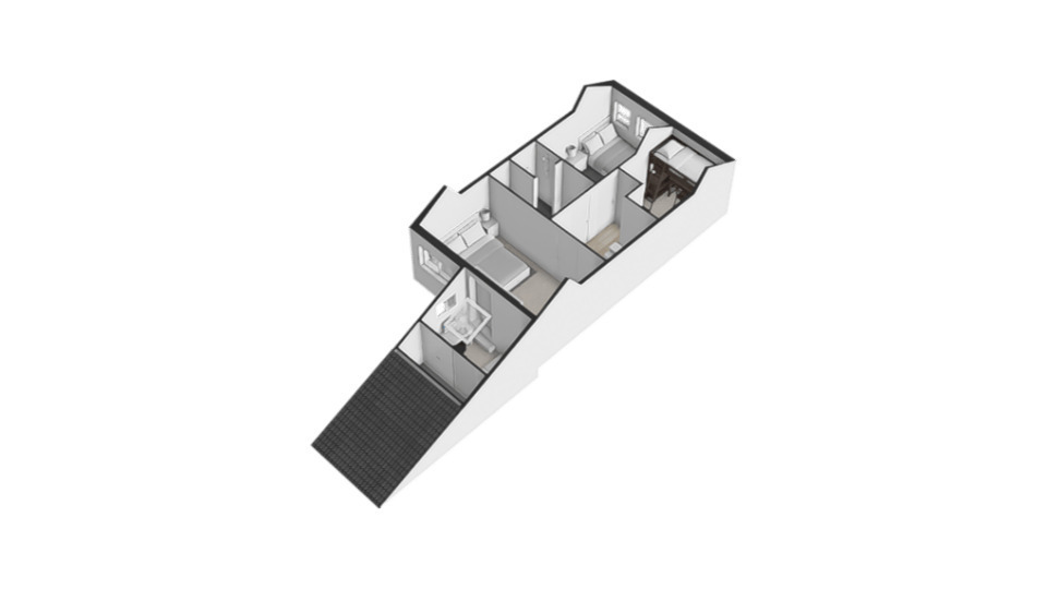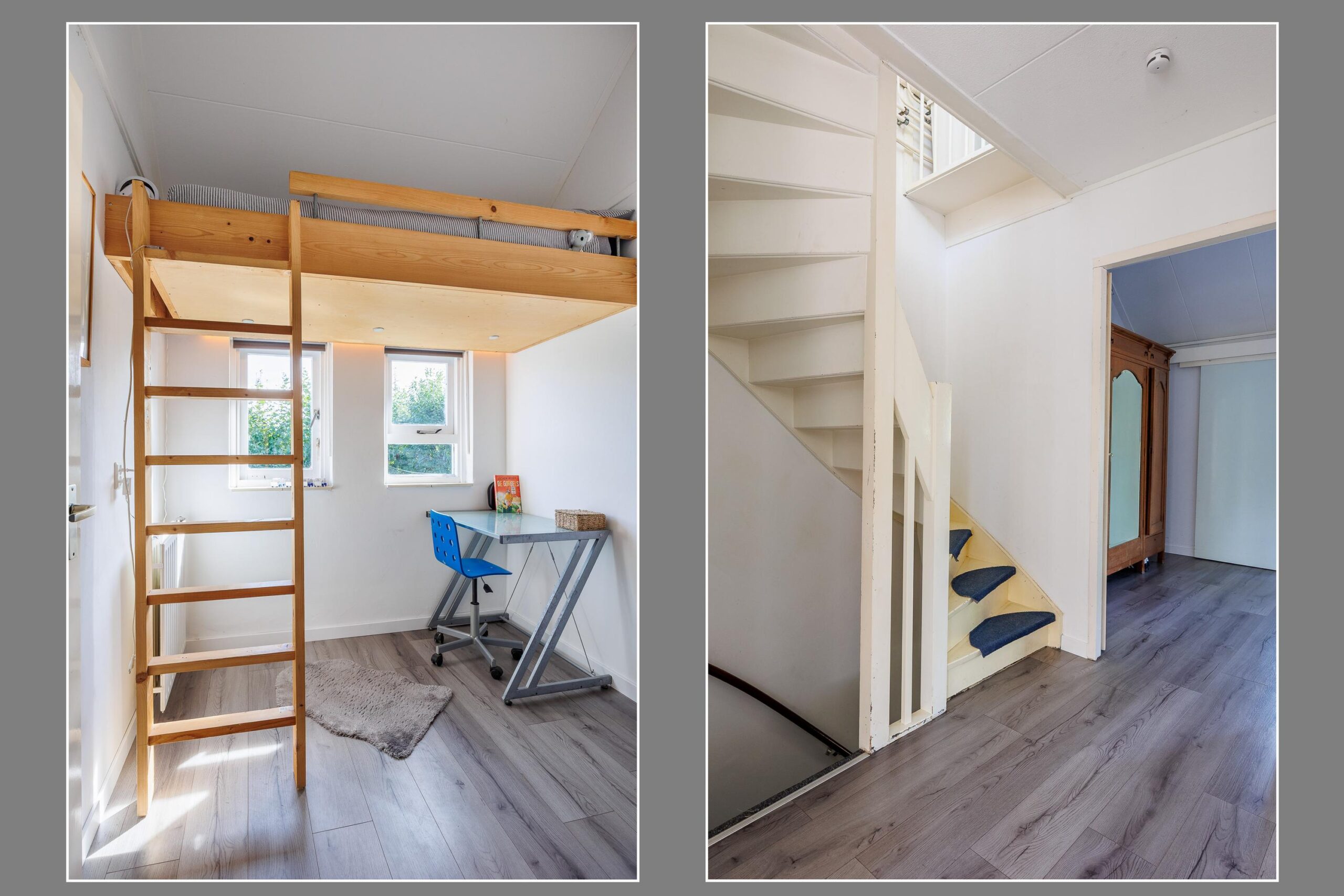 Tweede verdieping: Vaste trap, overloop met Cv-installatie en opbergruimte. De overloop geeft toegang tot 2 slaapkamers van circa 11 en 9 m², beide voorzien van brede dakkapellen.