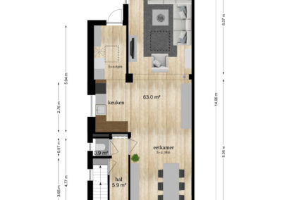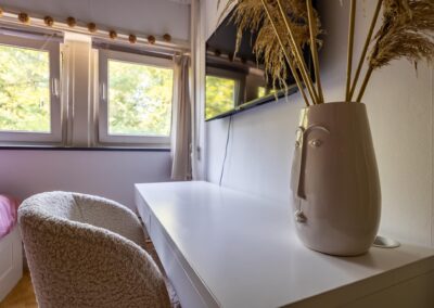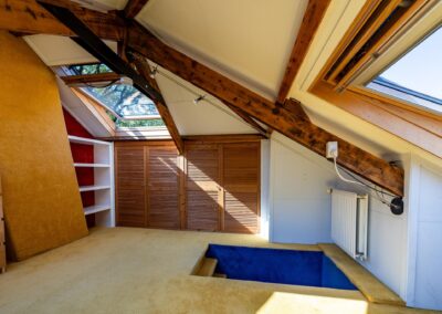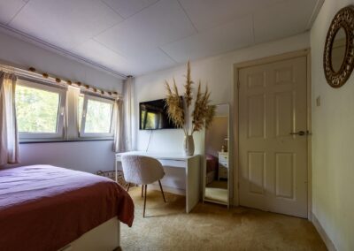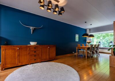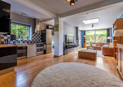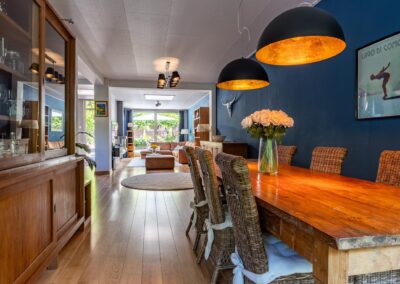Aan de voorzijde van de woning heeft u een schitterend uitzicht op het Rijsenburgse Bos, wat zorgt voor een serene en rustgevende omgeving. Dit biedt niet alleen een prachtig uitzicht, maar ook de mogelijkheid voor wandelingen en recreatie in de natuur direct voor de deur. Deze unieke combinatie van karaktervolle architectuur, moderne voorzieningen en een idyllische omgeving maakt deze twee-onder-een-kapwoning uit de jaren ’30 een droomhuis voor iedere liefhebber van sfeervol en comfortabel wonen.