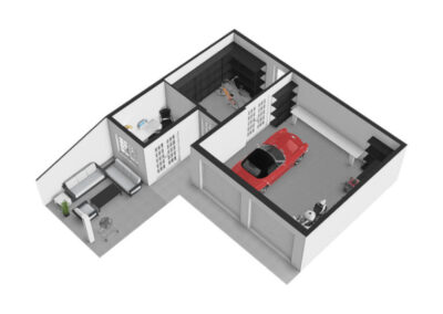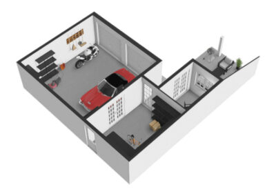 • Bijzonder fraai bijgebouw, voorzien van dubbele garage, veranda, kantoor/werkkamer, berging
