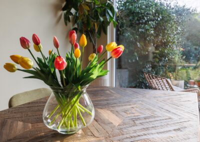 De vernieuwde eerste verdieping is voorzien van 3 ruime en lichte slaapkamers. Het geluid van de natuur is hier jouw wekker, want middenin deze bosrijke omgeving is dit het enige wat je hoort ’s morgensvroeg. Daarnaast bevindt zich op deze verdieping een luxe moderne badkamer (2024) voorzien van ligbad, douche, wastafel en toilet.