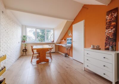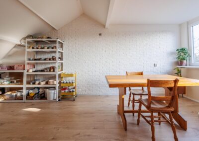 Via de trap kom je direct uit op een royale open ruimte met wasmachine aansluiting (16,6 m2), een slaapkamer met dakkapel (20,7 m2) én een technische ruimte met warmtepomp.