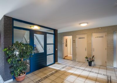 ENTREE via een ruime algemene ontvangsthal met bellenplateau voorzien van video-/ intercominstallatie, postbussen en trappenhuis met liftvoorziening. Het appartement ligt op de bel-etage.