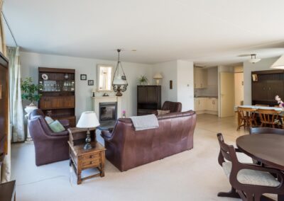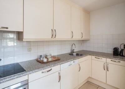 Het appartement biedt een ruime woonkamer met een halfopen keuken, 2 slaapkamers en een badkamer. De woonkamer en de hoofdslaapkamer geven beide toegang tot het fijne zonneterras met veel privacy en gelegen op het oosten met vrij uitzicht. In het souterrain is de eigen parkeerplaats en berging gelegen.