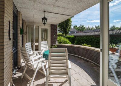Het appartement biedt een ruime woonkamer met een halfopen keuken, 2 slaapkamers en een badkamer. De woonkamer en de hoofdslaapkamer geven beide toegang tot het fijne zonneterras met veel privacy en gelegen op het oosten met vrij uitzicht. In het souterrain is de eigen parkeerplaats en berging gelegen.