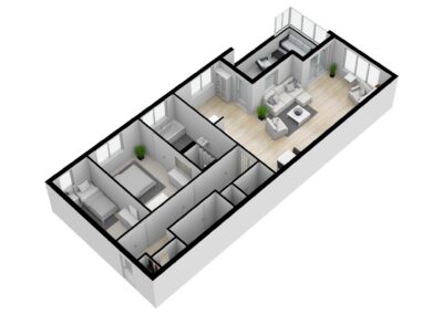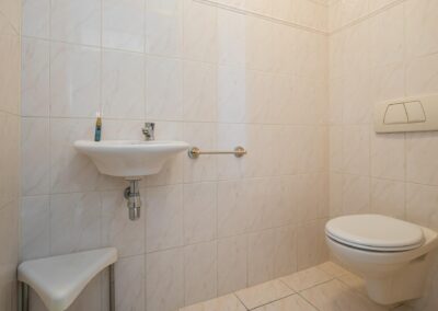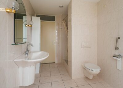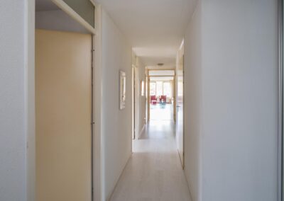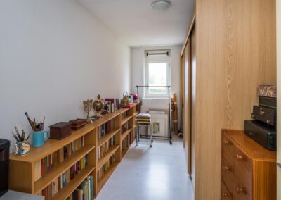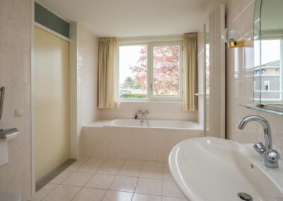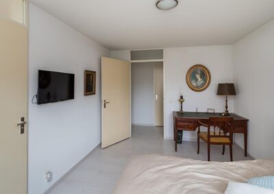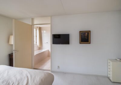 De 2 slaapkamers zijn 14,8 m² en 9,6 m² groot. De badkamer is uitgerust met een ligbad, een separate douche, vaste wastafel en een toilet. De badkamer is zowel vanuit de hal als vanuit de hoofdslaapkamer bereikbaar.