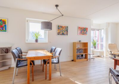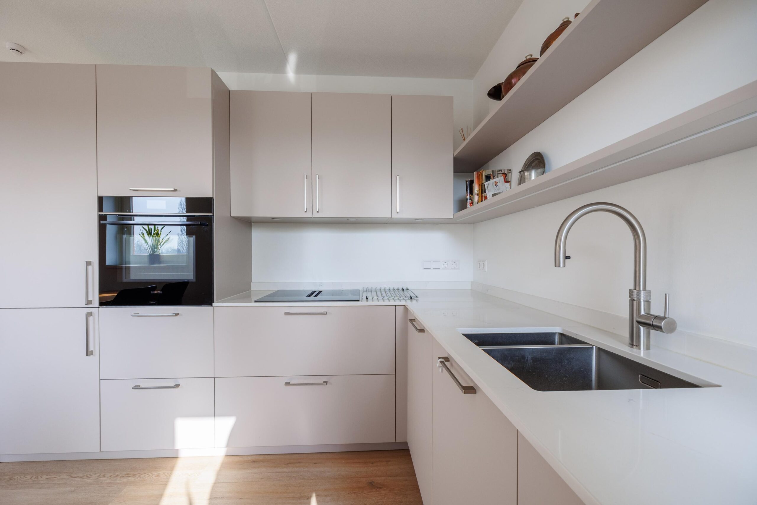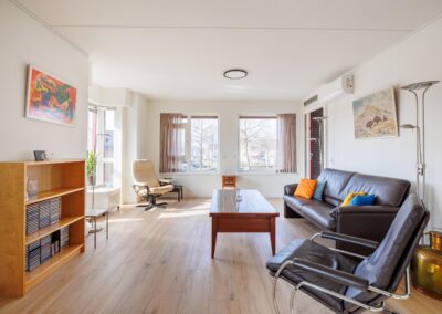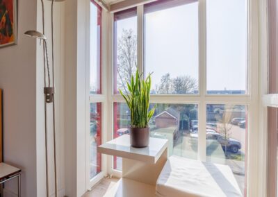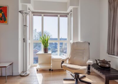 Dankzij de hoekligging geniet de woning van veel natuurlijk lichtinval door de ramen aan twee zijden. De erker aan de zijkant van het appartement zorgt bovendien voor een fraai uitzicht en extra ruimtelijk gevoel.