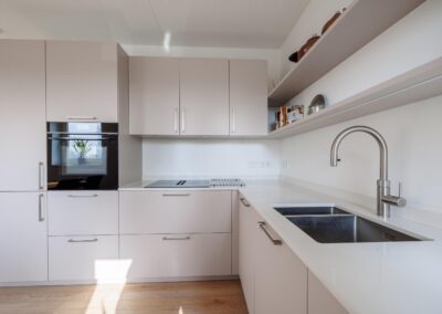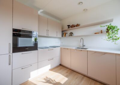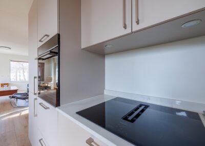 De open keuken (2024) is voorzien van luxe blad en diverse apparatuur, waaronder een inductiekookplaat met afzuiging, oven, koel-vriescombinatie en vaatwasser. Vanuit de ramen in de keuken is er een fraai zicht op de straat “de Bijenkorf”. Naast de grote slaapkamer is er ook nog een 2e slaapkamer aanwezig. De badkamer (2024) is te betreden vanaf de grote slaapkamer en voorzien van een wastafelmeubel, douche, handdoekenradiator en toilet. De wasruimte is bereikbaar vanuit de hal en hier is ruimte voor een wasmachine, droger, voorraadstelling en tevens bevindt de boilerinstallatie en mechanische ventilatie box zich hier. Tot slot is er een separaat toilet voorzien van een fonteintje.