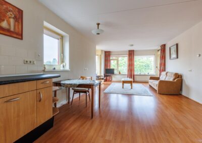 De open keuken is voorzien van diverse apparatuur, waaronder een kookplaat (2019), oven, koel-vriescombinatie en vaatwasser. Vanuit de ramen in de keuken is er een fraai zicht op de straat “de Bijenkorf”. Naast de grote slaapkamer is er ook nog een 2e slaapkamer aanwezig. De badkamer is te betreden vanaf de grote slaapkamer en vanuit de hal en voorzien van een wastafel, ruime inloopdouche, handdoekenradiator. De wasruimte is bereikbaar vanuit de hal en hier is ruimte voor een wasmachine, droger, voorraadstelling en tevens bevind de CV en mechanische ventilatie box zich hier. Tot slot is er een separaat toilet voorzien van een fonteintje.