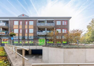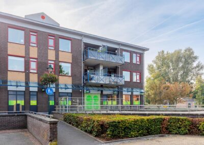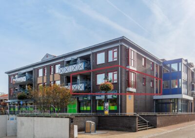 Dit comfortabele 3-kamerappartement ligt op de hoek van de 1e verdieping van het appartementencomplex “de Bijenkorf” en heeft een overdekt balkon op het noordwesten. Wat dit HOEKAPPARTEMENT aantrekkelijk maakt, is het licht dat aan twee kanten binnenkomt in de woning, een erker aan de zijkant van de woning met een prachtig ver uitzicht, een ruime woonkamer, open keuken, overdekt balkon, een Frans balkon op het zuidwesten, een eigen berging en parkeerplaats in de parkeergarage! Bovendien is er een lift aanwezig in de centrale hal (trappenhuis) met tevens automatische deuren, waardoor het een levensloopbestendige woonbestemming is. Er is een intercom/videosysteem aanwezig in het appartement en camerabeveiliging in het complex.