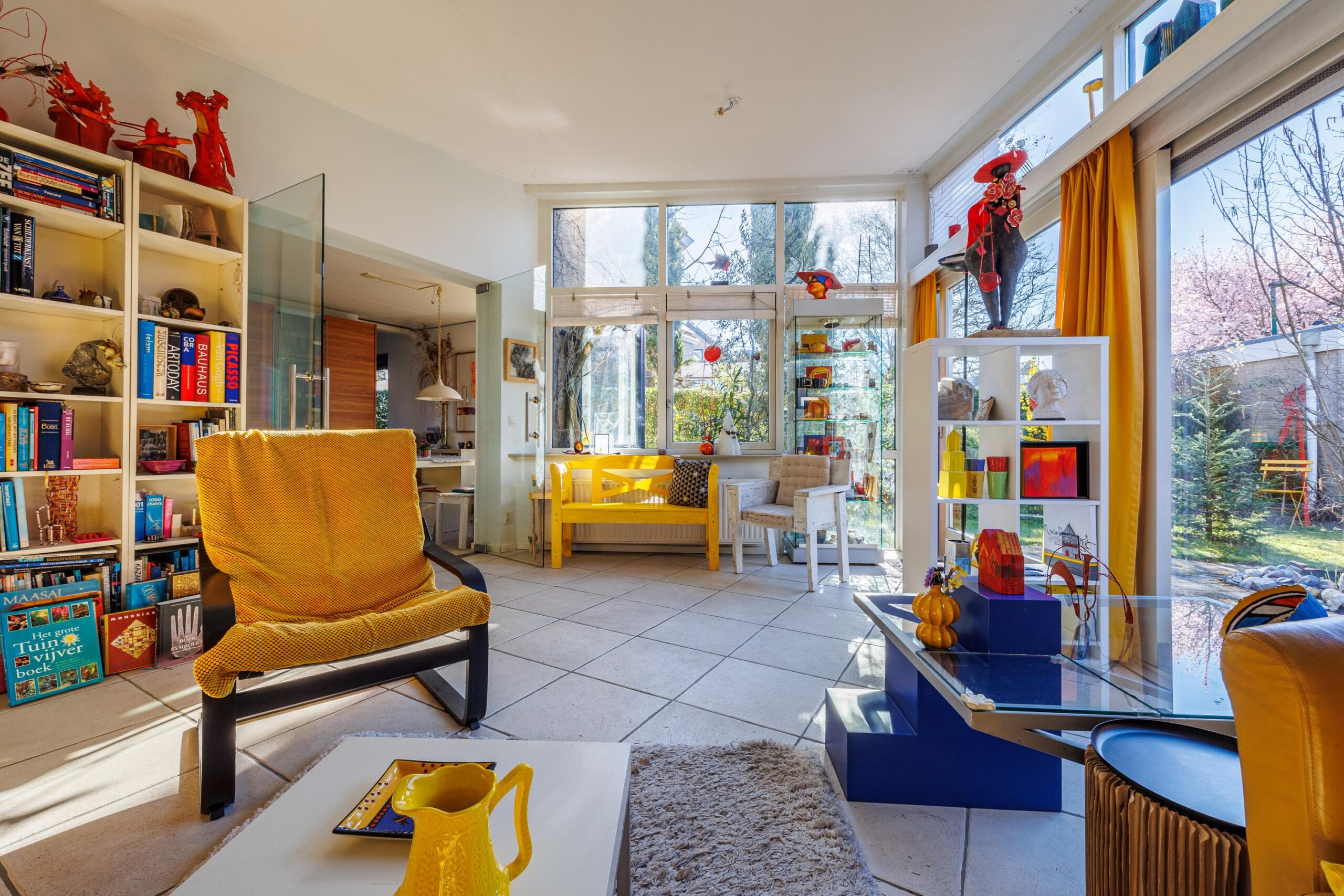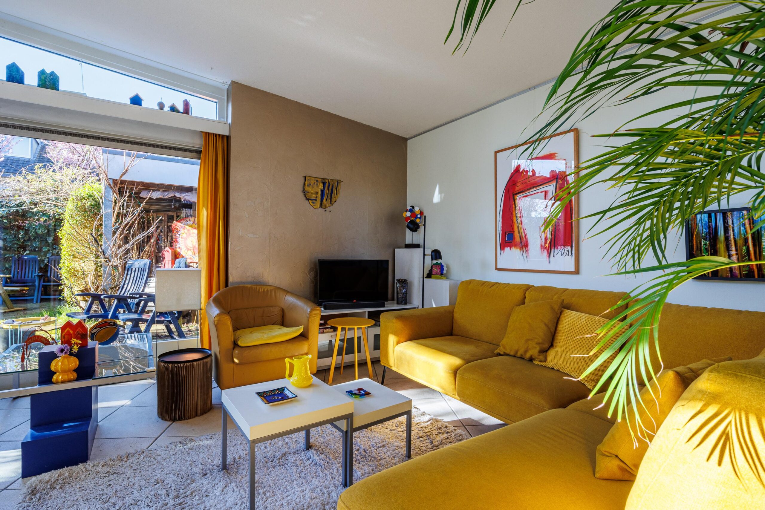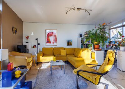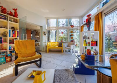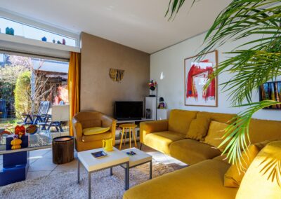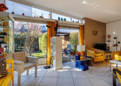 • Woonkamer met verrassende raampartijen.