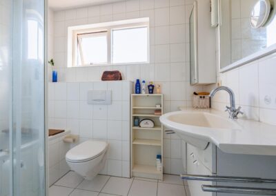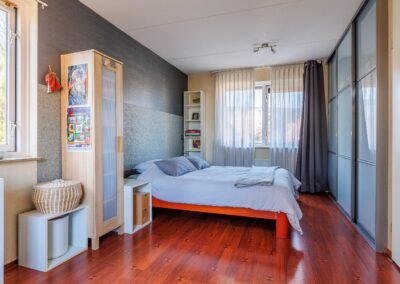 Op de eerste verdieping vindt u de overloop met toegang tot een praktische stook- en wasruimte, waar zich de opstelling voor de wasmachine, droger en cv-installatie bevindt. De royale hoofdslaapkamer (voorheen twee kamers) beschikt over een luxe wandkast en biedt volop ruimte. De badkamer is compleet uitgevoerd met een ligbad, separate douche, wastafelmeubel en een tweede toilet.