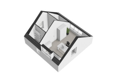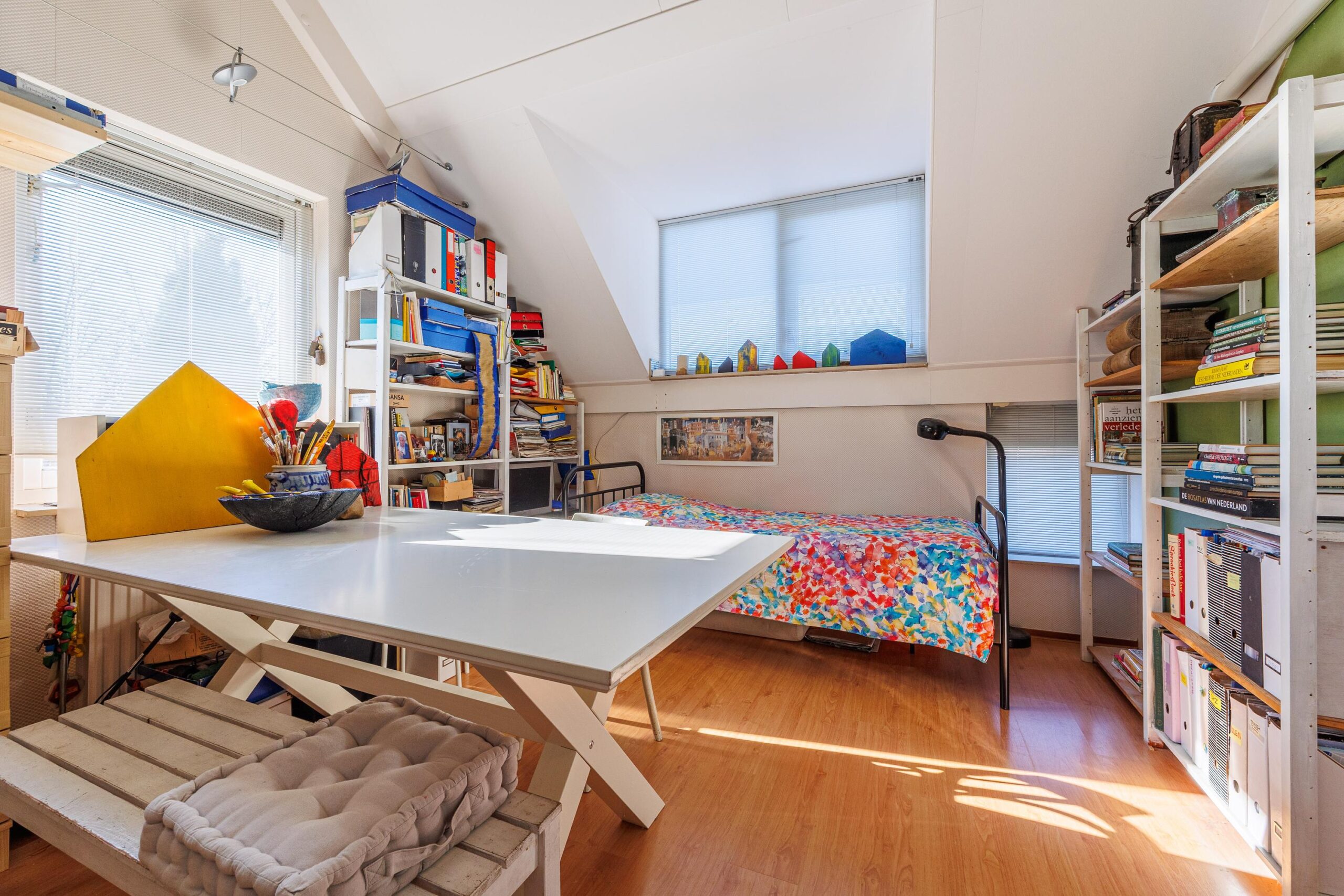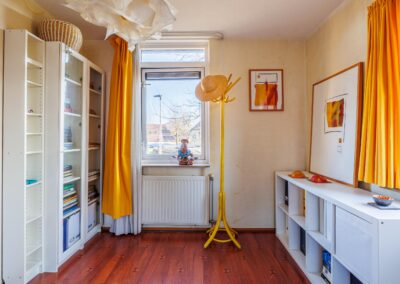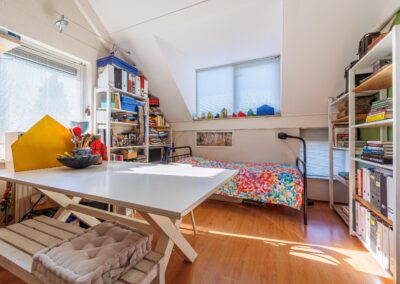 De tweede verdieping verrast met een overloop, twee ruime bergingen en een fraai afgewerkte royale werk-/slaapkamer met dakkapel én airconditioning. Indien gewenst is het hier mogelijk om een extra kamer te realiseren. Zowel de eerste als de tweede verdieping zijn afgewerkt met laminaatvloeren.