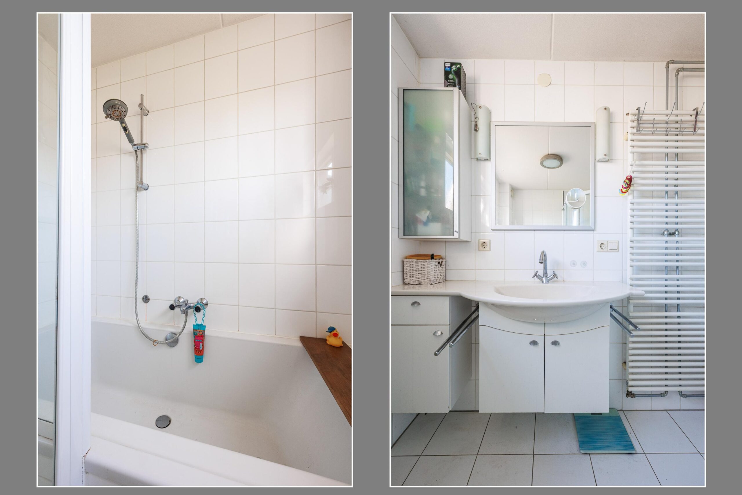 Overloop met toegang tot de masterbedroom met luxe wandkast (voorheen 2 slaapkamers). Badkamer uitgerust met een wastafelmeubel, ligbad, douche en toilet, wasmachine kamer.