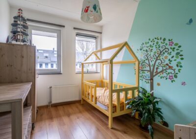 Vaste trap naar voorzolder met aansluiting voor witgoedapparatuur, CV-installatie (2019) en zonneboiler en de ruime 4e slaapkamer van 20 m² voorzien van een dakraam.