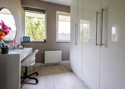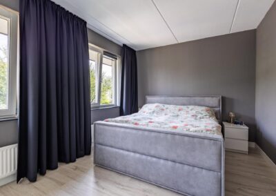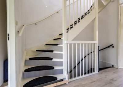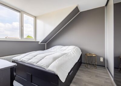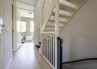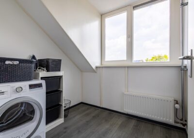 Vaste trap naar de ruime zolderverdieping met een brede dakkapel aan de achterzijde van het huis en voor dakramen, op deze verdieping vind je hier de overloop en toegang tot de 3 slaapkamers van 8,9 m², 8,7 m² en 4,1 m². Verder is er een bergvliering en ruimte voor cv-installatie (2022) en de witgoedaansluitingen,