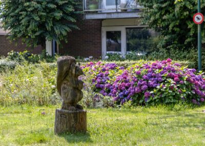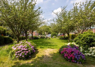 • Uitzicht voorzijde over het fraaie autovrij plantsoen.