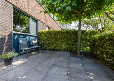 • Uitzicht voorzijde over het fraaie plantsoen (hofje, autovrij)