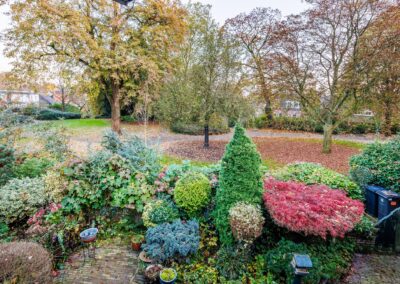 De tuin is gelegen op het zuidoosten. Hier heeft u uitzicht op het groene parkje aan de achterzijde van de Andrieskerk.