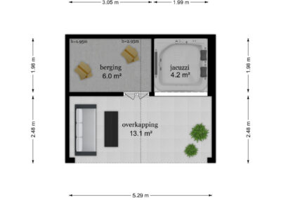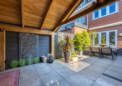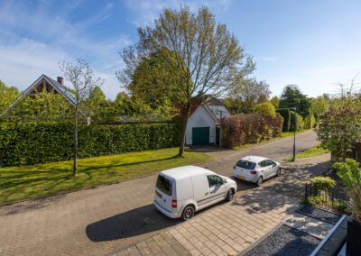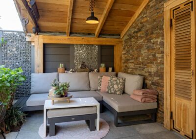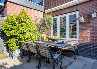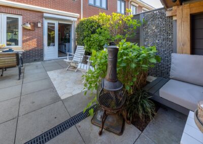 – Achtertuin met bijgebouw en overkapping van 2020.