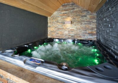 De heerlijk zonnige tuin is gunstig gelegen op het zuiden en grotendeels bestraat. Een elektrisch bedienbaar zonnescherm biedt schaduw op het terras bij huis. Achterin de tuin is er een fraaie chalet met veranda geplaatst van massief Eikenhout, voorzien van een whirlpool geschikt voor 5 personen! Er is een goede berging in het chalet, alsmede een kleine vliering onder de kap. Via de berging is een achterom bereikbaar.