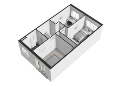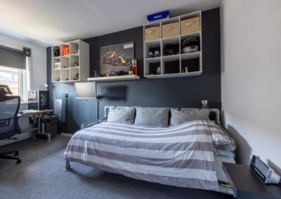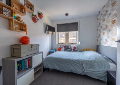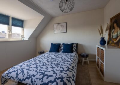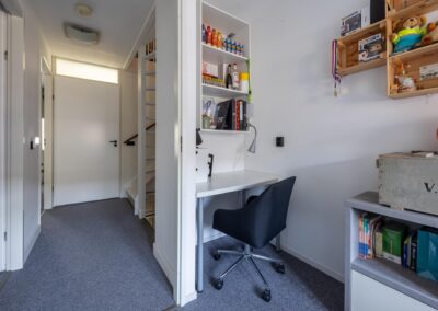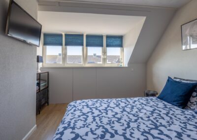 2e Verdieping: overloop met WTW Unit en aansluiting voor de wasmachine. Aan de voorzijde een kleine slaap-/werkkamer met dakraam. Aan de achterzijde een ruime 5e slaapkamer met brede dakkapel en een 2e badkamer voorzien van inloopdouche en waskom. Vanuit de overloop toegang naar bergruimte boven de slaapkamers.