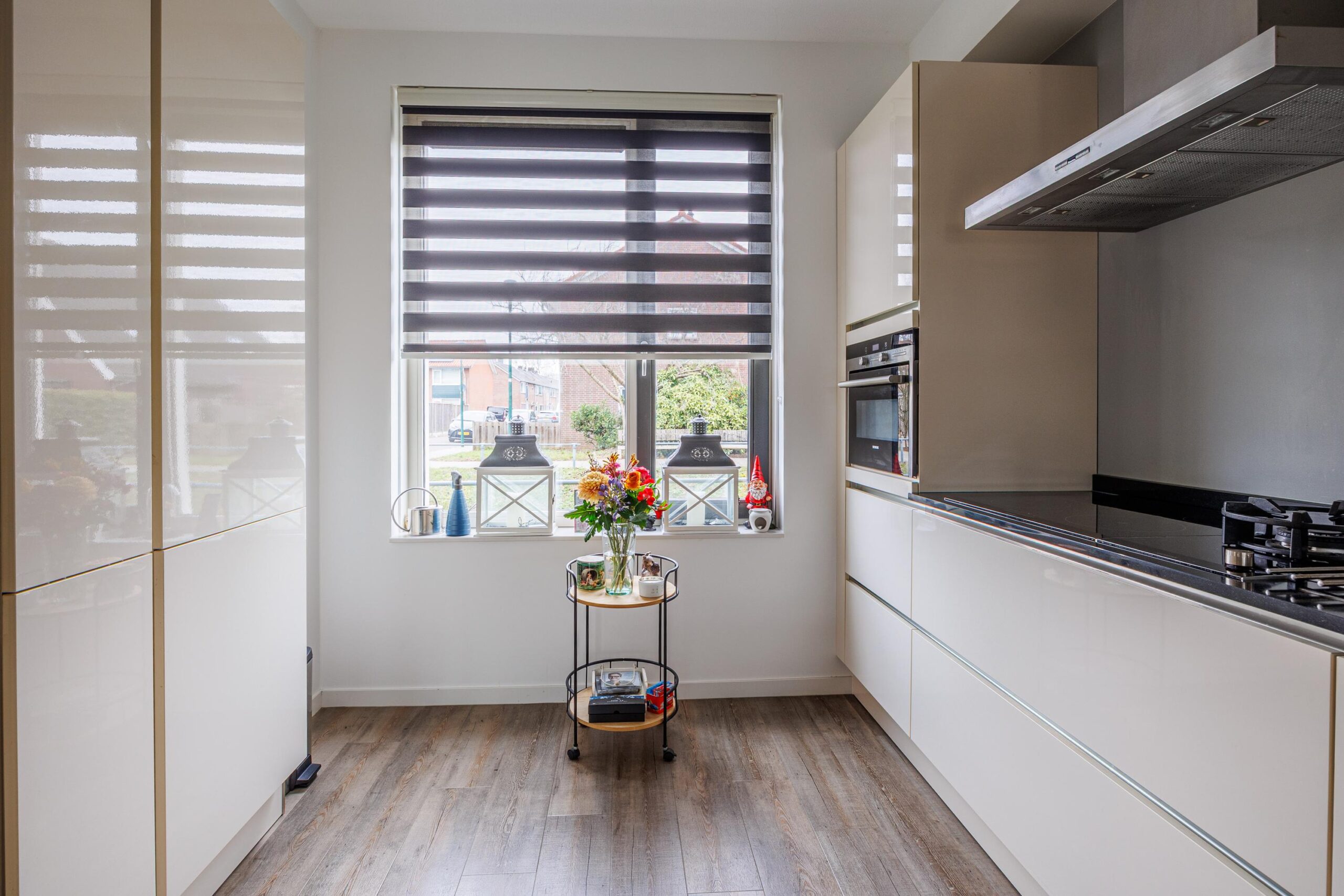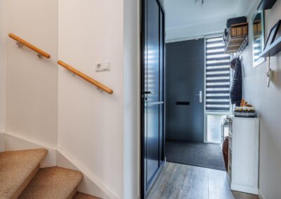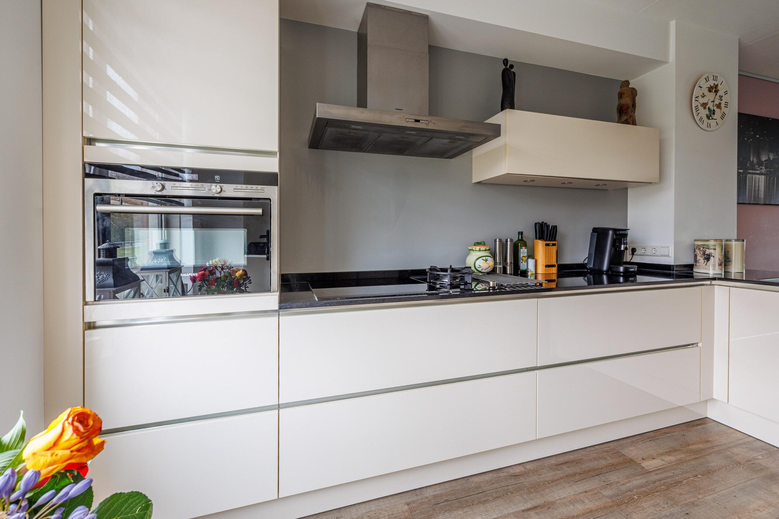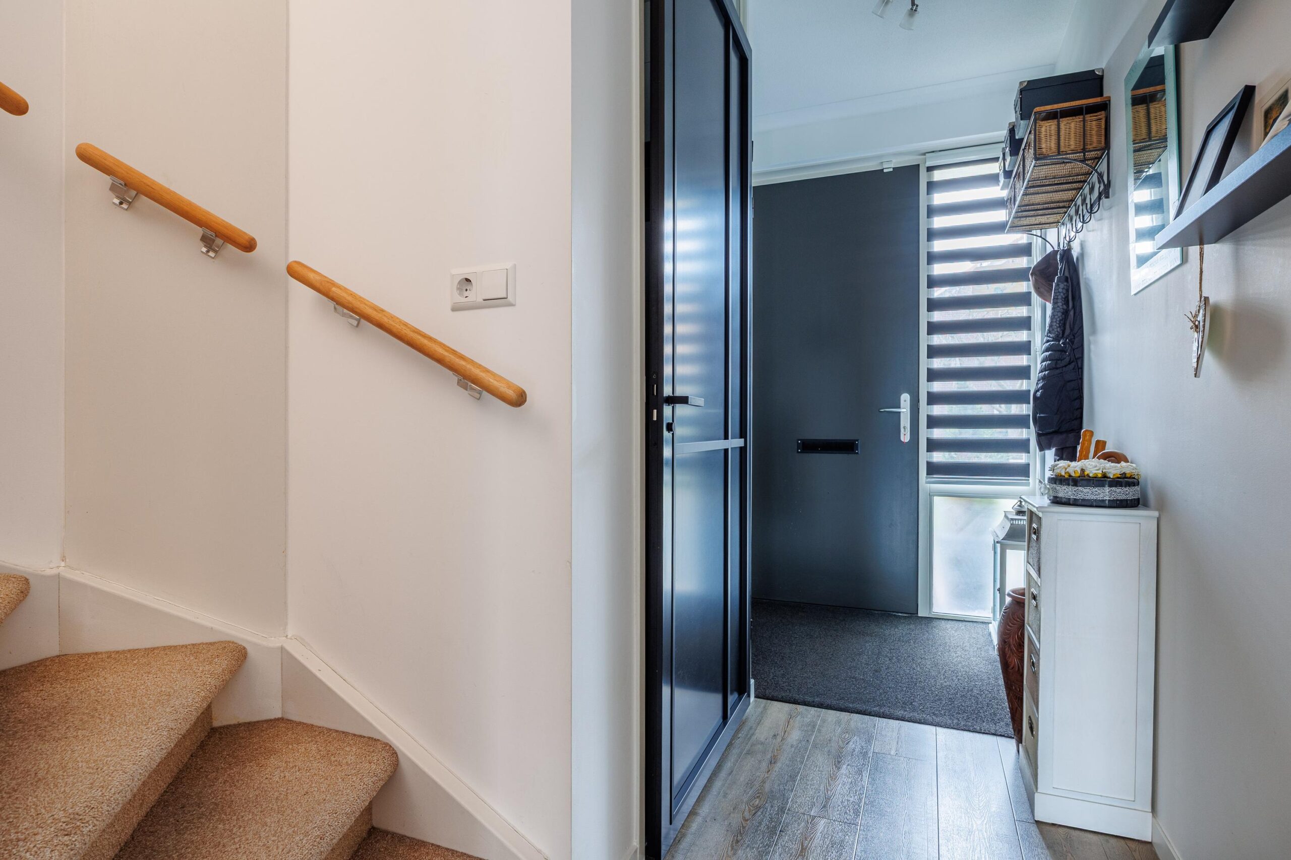 ENTREE, hal met meterkast en toiletruimte. De royale, tuingerichte woonkamer van 39.9 m² is aan de achterzijde van de woning gelegen en beschikt over een praktische vaste kast onder de trap en een deur naar de serre. Aan de voorzijde bevindt zich de open keuken, compleet uitgerust met een inductiekookplaat met wokbrander, afzuigkap, koelkast, vriezer, combimagnetron en vaatwasser. De volledige begane grond is bovendien voorzien van comfortabele vloerverwarming.