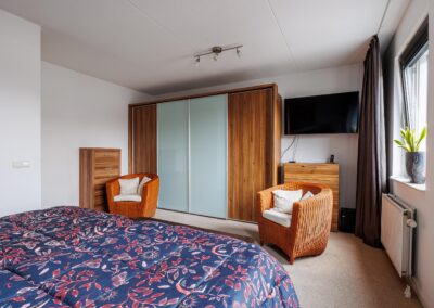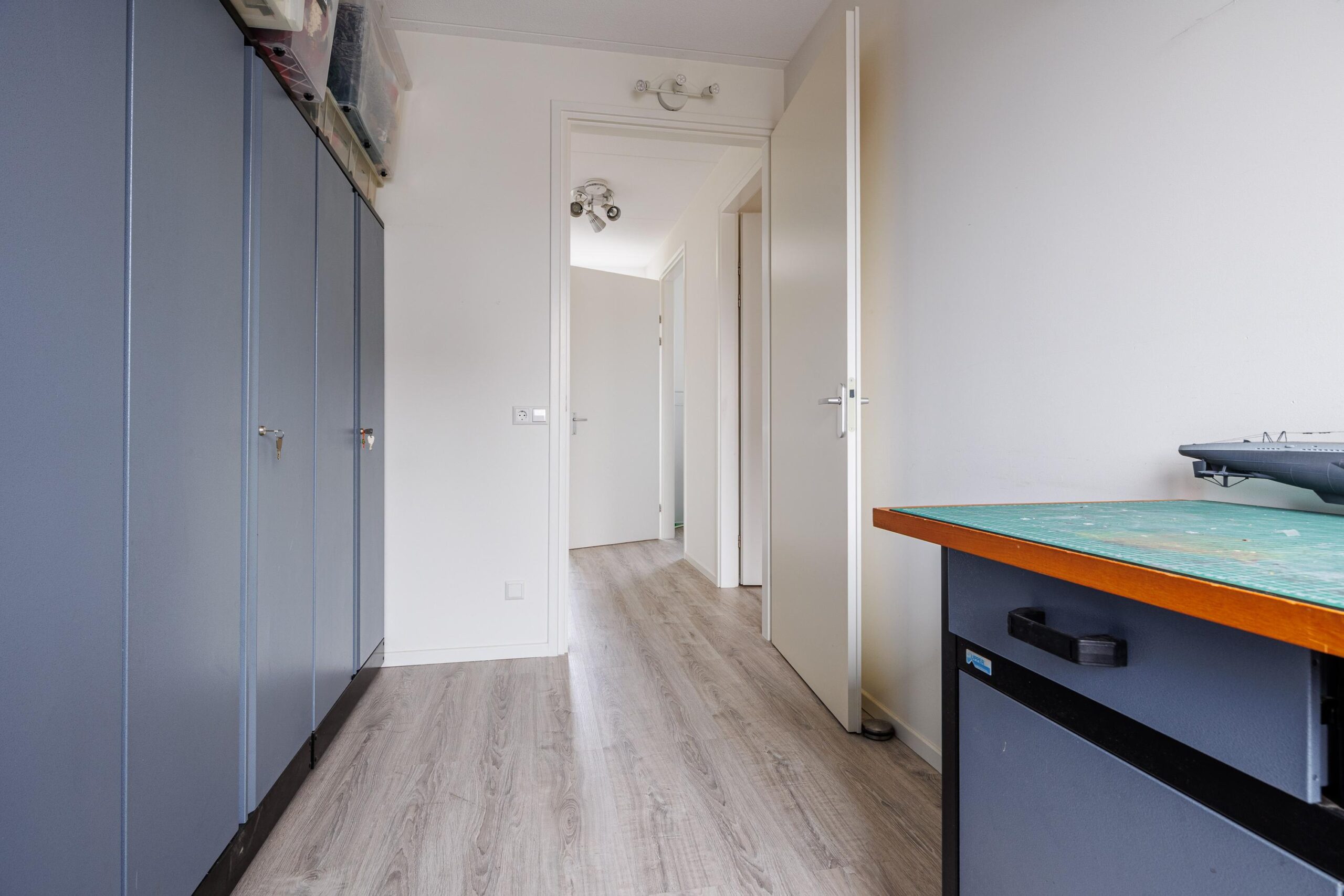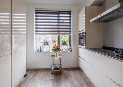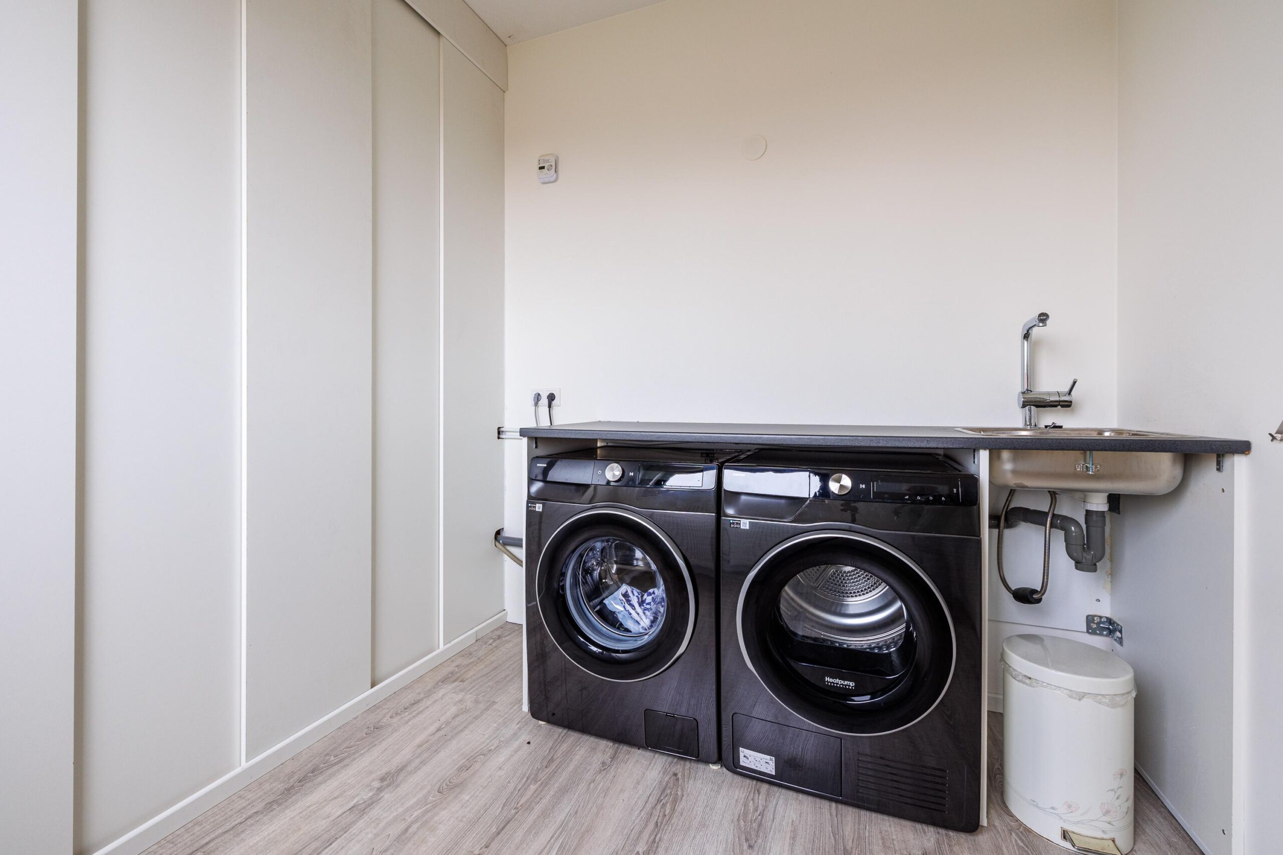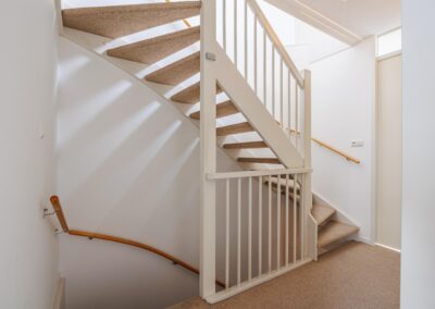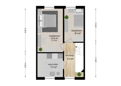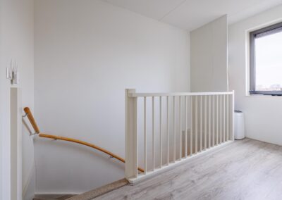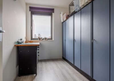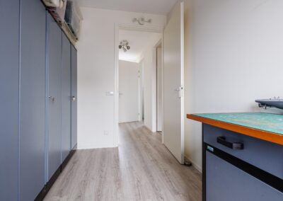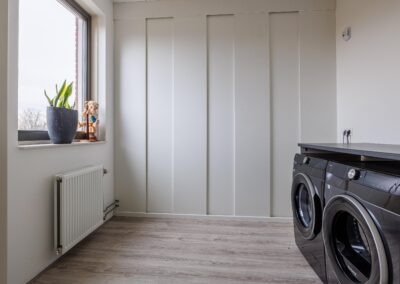 Overloop met toegang tot twee comfortabele slaapkamers van 13.8m² en 8.0m² en een derde kamer, die momenteel is ingericht als praktische wasruimte met aansluitingen voor wasmachine en droger en de opstelplaats van de cv-ketel. Deze ruimte leent zich desgewenst ook voor andere gebruiksmogelijkheden en is 7.5m².