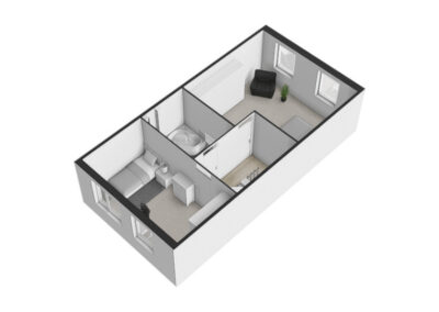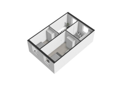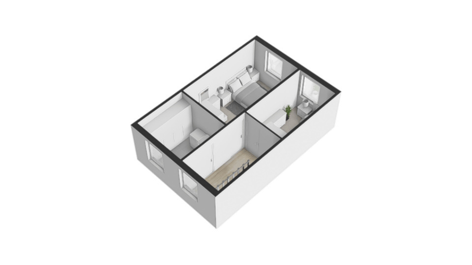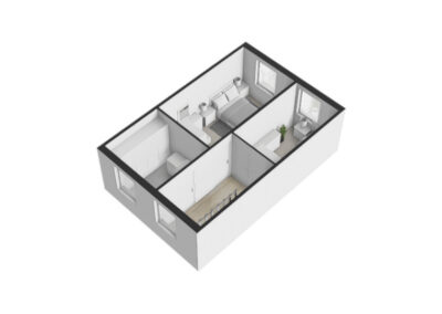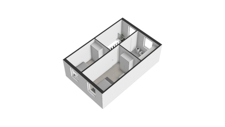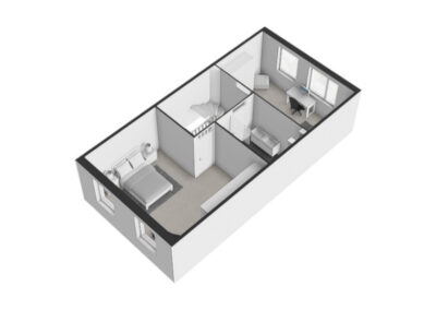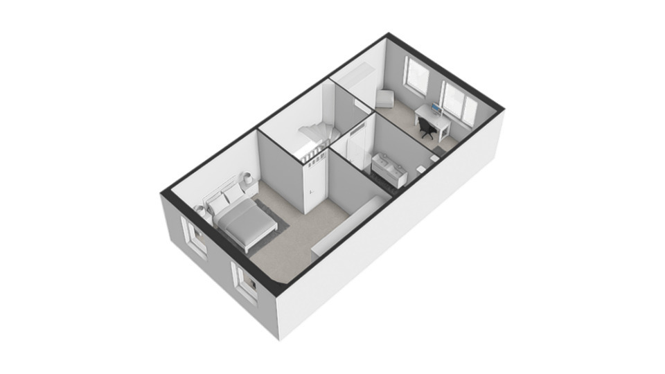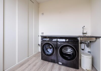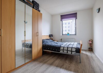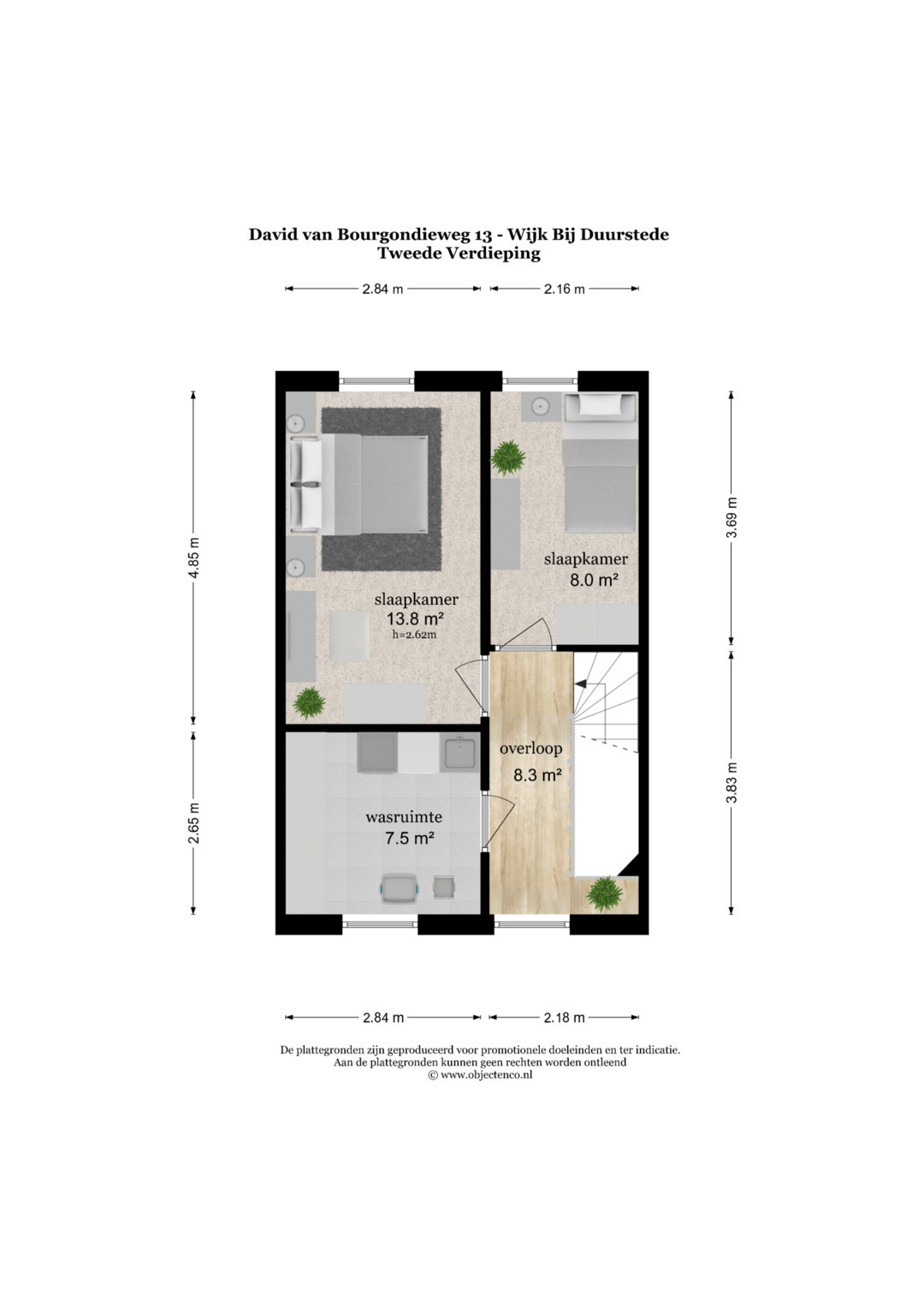 Overloop met toegang tot twee comfortabele slaapkamers van 13.8m² en 8.0m² en een derde kamer, die momenteel is ingericht als praktische wasruimte met aansluitingen voor wasmachine en droger en de opstelplaats van de cv-ketel. Deze ruimte leent zich desgewenst ook voor andere gebruiksmogelijkheden en is 7.5m².