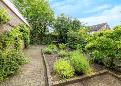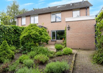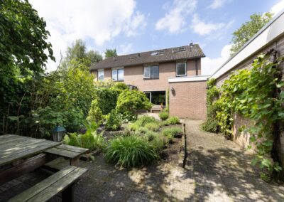 U bereikt de woning via uw eigen oprit, deze is geschikt voor meerdere auto's. De woning heeft een woonoppervlakte van 130 m2, verdeeld over 3 woonlagen met 4 slaapkamers. Aan de voorzijde van de woning ligt de woonkamer (welke is voorzien van vloerverwarming) en achter ligt de eetkamer waar u zo door naar de open keuken wandelt, deze keuken heeft een raam in de zijgevel en aansluitend de aangebouwde bijkeuken en door de achterdeur bereikt u de achtertuin. De royale diepe achtertuin is gelegen op het zuidoosten, wat maakt dat het er heerlijk vertoeven is, maar tevens zijn er schaduwplekken gecreëerd door de bomen (waaronder magnolia bomen). De vrijstaande garage is voorzien van elektra, dus ideaal om uw auto, motor of elektrische fietsen in te stallen. Grenzend aan de achterzijde van de woning vindt u een speelhofje, zodat de kids op geringe afstand van de woning met de buurtkinderen kunnen spelen terwijl u een oogje in het zeil houdt.