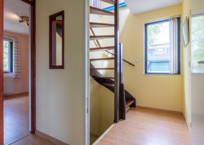 Overloop met toegang tot 3 slaapkamers. Op deze etage bevindt zich de badkamer uitgerust met een wastafel, douche, bad en toilet.