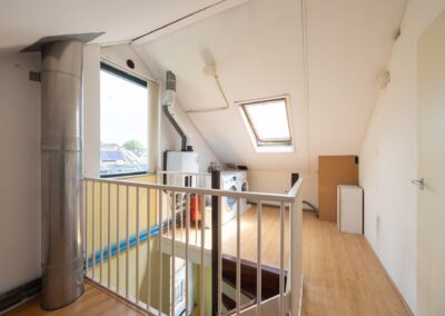 Overloop met veel bergingsruimte, CV ruimte en wasmachine opstelling en toegang tot 1 slaapkamer.
