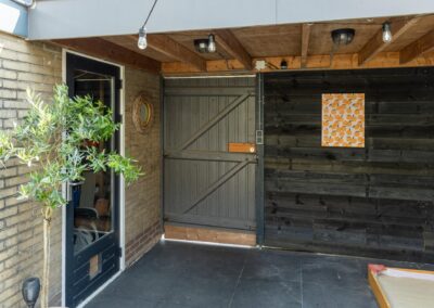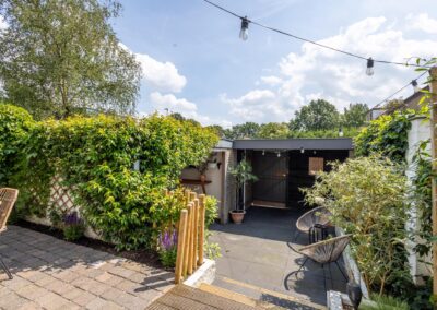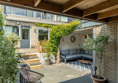 Stap naar buiten en laat u verrassen door de speels aangelegde tuin op het zuidoosten. Hier vindt u een gezellige veranda met o.a. een minibar en tv-aansluiting, ideaal voor lange zomerse avonden met vrienden/familie en ontspannende weekenden. De tuin biedt voldoende ruimte voor kinderen om te spelen, voor groene vingers om te tuinieren en voor uzelf om gewoon te genieten van de buitenlucht. De veranda biedt tevens beschutting en maakt het mogelijk om ook bij minder weer buiten te zitten. Een ruime berging zorgt voor extra gemak zodat u voldoende opbergruimte heeft, uw (elektrische) fietsen of tuingereedschap kunt stallen. Daarnaast is er een tweede veranda/ overkapping.