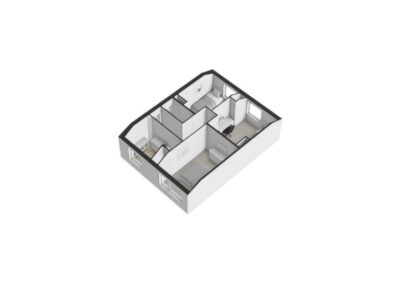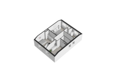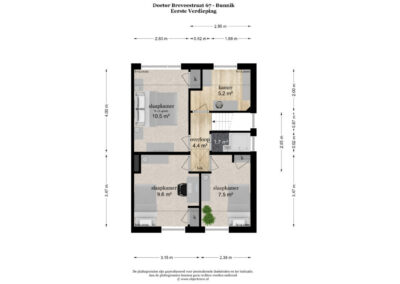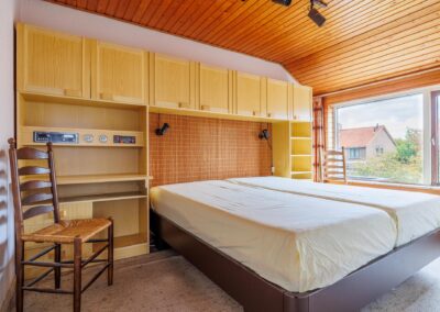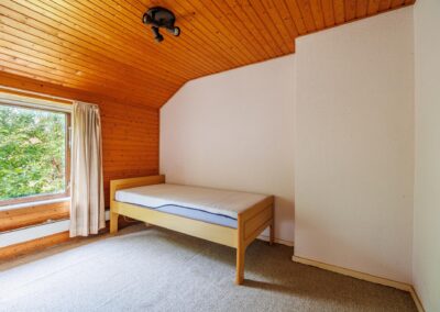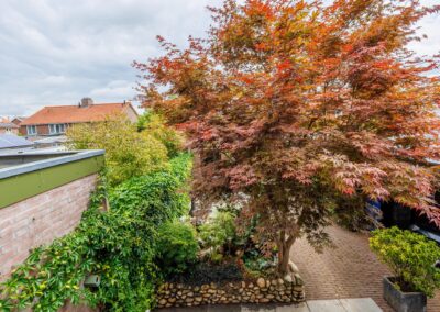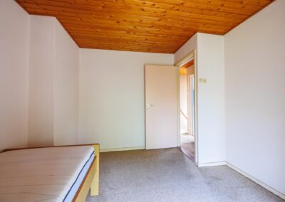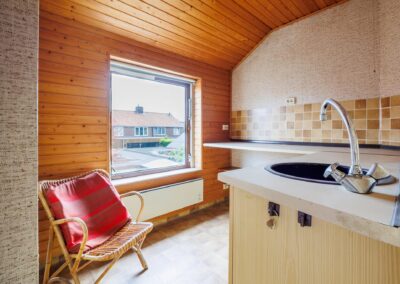 Hier bevinden zich 3 slaapkamers en een extra werkkamer, ideaal voor thuiswerken of als inloopkast. De badkamer is uitgerust met een wastafel en douche. Via de overloop heb je toegang tot een ruime vliering over de gehele breedte van de woning, perfect als extra opslagruimte. Hier is ook de huurboiler opgesteld.