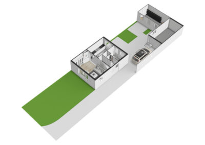 – Vrijstaande garage, carport en stenen berging en oprit, ideaal voor parkeren op eigen terrein.