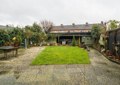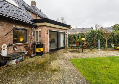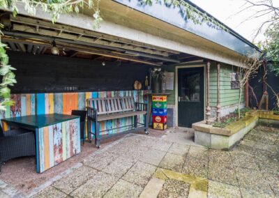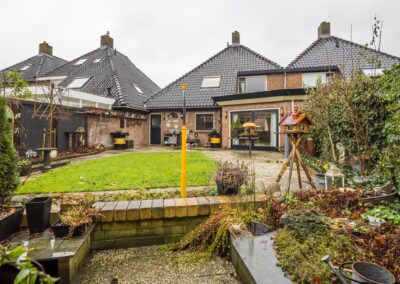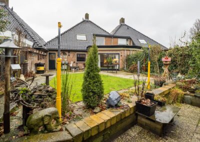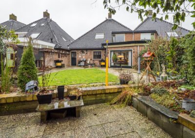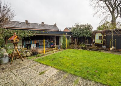 De royale achtertuin is op het zuidoosten gesitueerd en is groot genoeg om de hele dag te kunnen genieten van de zon. Hier bevinden zich ook de 2 bergingen met een fijne veranda. Verder is er een achterom aanwezig.