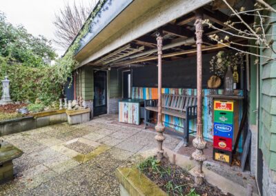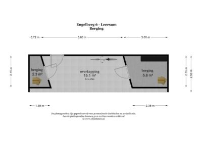 – Inpandige berging en 2 vrijstaande bergingen met overkapping.