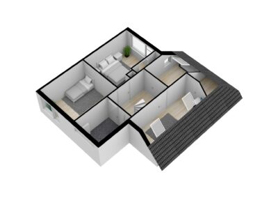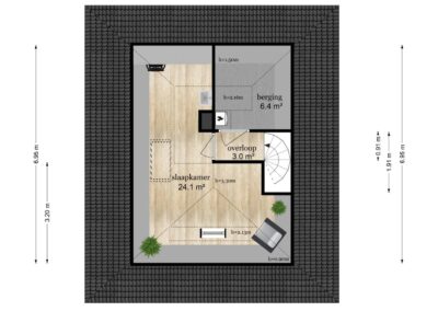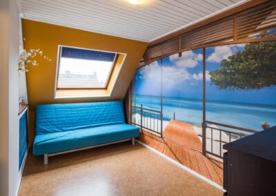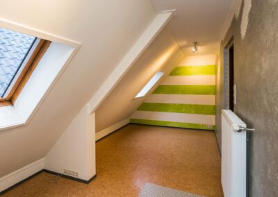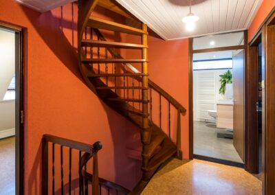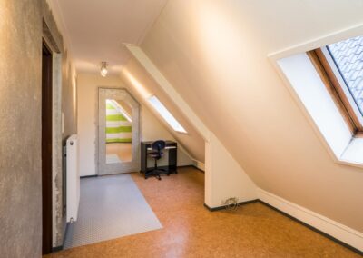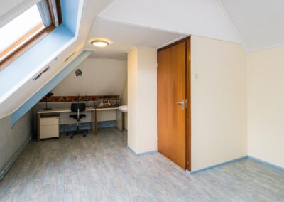 Vaste trap naar de zolderverdieping met een berging waar de cv-installatie staat en de 5e slaapkamer met een royale oppervlakte van 24 m² voorzien van een dakraam.