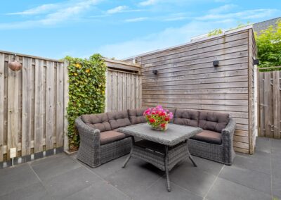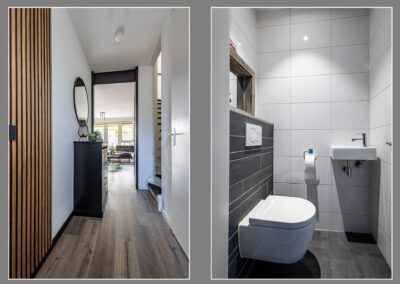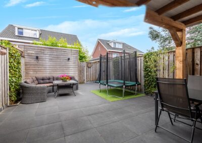 Begane grond: ENTREE, hal, meterkast, moderne toiletruimte met hangend closet en fonteintje. Ruime woonkamer met open keuken, samen circa 34 m² groot. De moderne inbouwkeuken is ingericht met 5-pits gas-op glas kookplaat, afzuigkap, koelkast, vrieskast, heteluchtoven en combimagnetron. De tuingerichte woonkamer heeft een brede raampartij voor optimale lichtinval en openslaande deuren naar de tuin. Onder de trap is er een praktische trapkast. De gehele begane grond is voorzien van een mooie laminaatvloer met vloerverwarming. De zonnige tuin heeft robuuste overkapping van 12,6 m² aan het huis met lichtstraat, een heerlijk zonnig terras, een houten berging en een achterom. De tuin is circa 8,5 meter diep, gesitueerd op het zuidoosten en verzorgd aangelegd. De voortuin is eveneens erg leuk ingericht met fraai terras en groen.