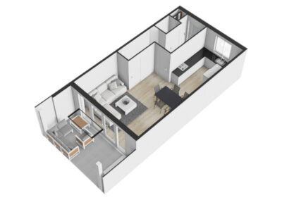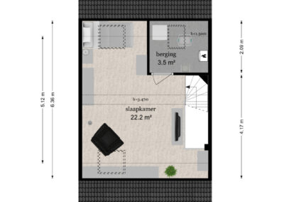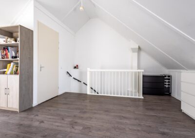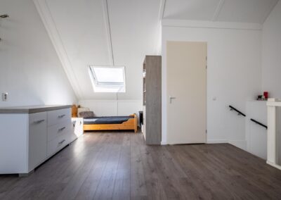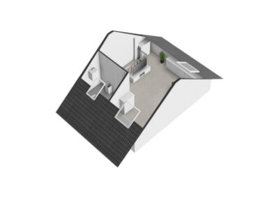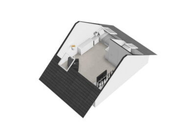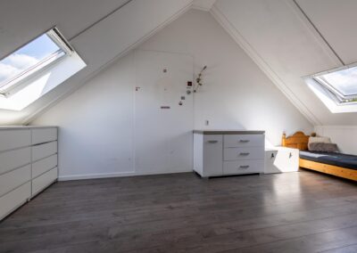 De ruime zolderverdieping is te bereiken middels een vaste trap en is een open ruimte voorzien van 3 Velux dakramen. Tevens is er een afgesloten technische ruimte voor de opstelling van de wasmachine en droger en de cv-installatie en mechanische ventilatie unit.