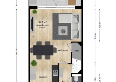 – De begane grond en de badkamer zijn voorzien van vloerverwarming.